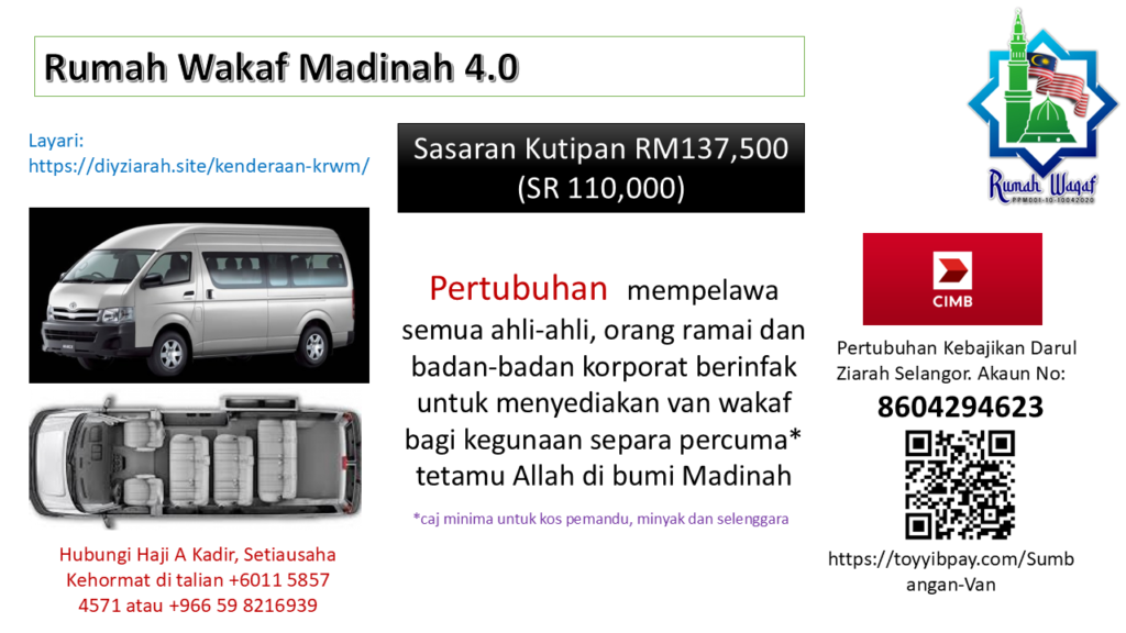 Saudara Luqman Hakim sempat merakam perjalanan beliau dari Pintu 310 Masjid Nabi ke RWM4.0 selepas waktu Syuruk. Jutaan terima kasih pada beliau memudahkan tetamu ke sini. Tetamu boleh juga menaiki buggy dari masjid nabi hingga ke Al Hayy Mughaysilah (tempat riadah pelancong) dan kemudian berjalan kaki sejauh 500m ke rumah wakaf sebagai salah satu pilihan.